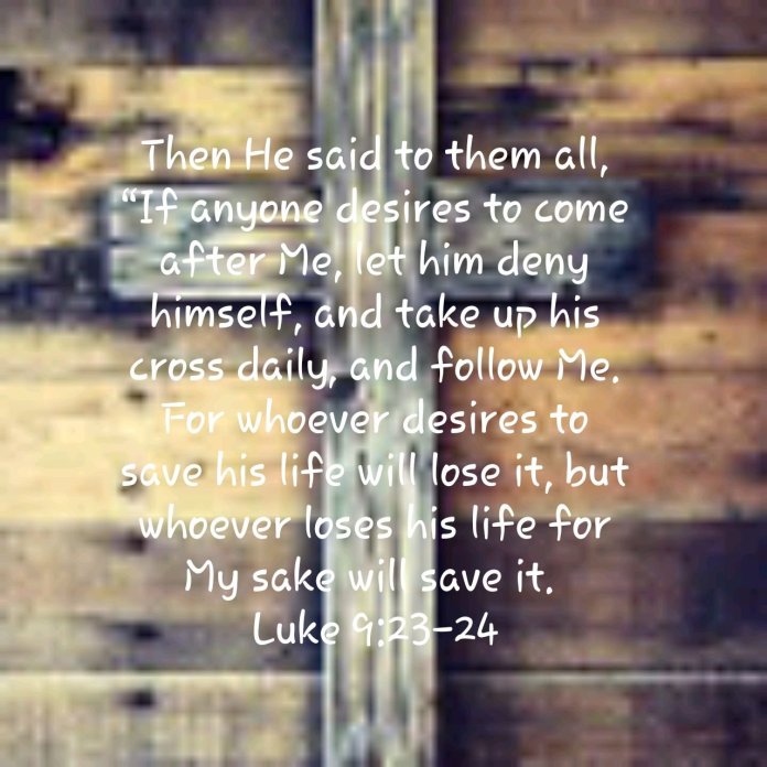 Then He said to them all, “If anyone desires to come after Me, let him deny himself, and take up his cross daily, and follow Me. For whoever desires to save his life will lose it, but whoever loses his life for My sake will save it.